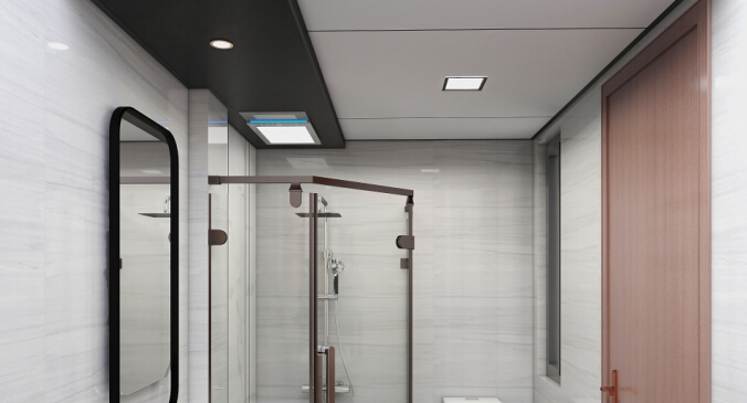 對于衛浴空間裝修來說,頂部的吊頂是重點,它與浴室電器搭配,自然成為了沐浴安全的第一“要塞”。